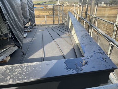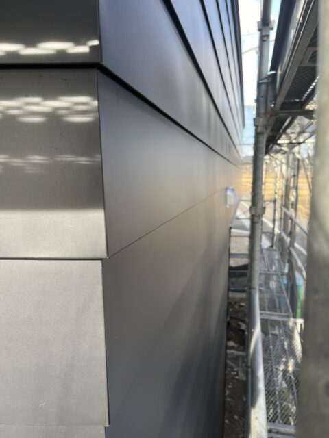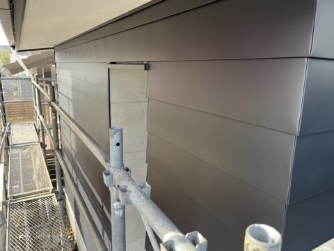 屋根は立てハゼ葺き、外壁は横張りとたて張りの