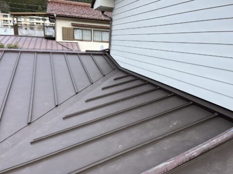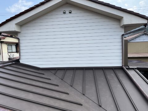 屋根は入隅谷から雨漏りがしていた為屋根はめくって葺き替え、外壁は波トタンで塗装がしてありハゲていたので横張りでの施工となりました。