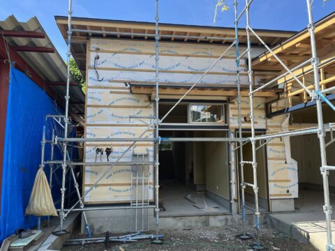 今回は外部透湿防水シート+胴縁下地も込みでやらさせていただきました。こちら7月に施工させてもらってたんですが他の物件が重なり合ってしまいちょっと工期に間に合いそうになく外壁は外注さんにお願いして張っていただき助けてもらいとても助かりました😊