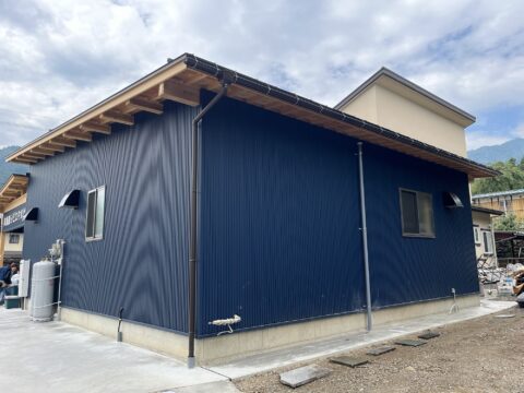 屋根は縦はぜ葺き・外壁は8山角波で施工です。