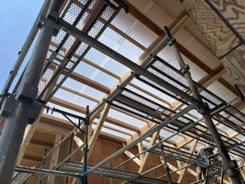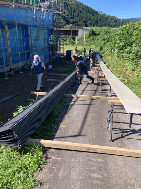 なにせ、住宅側の屋根の長さが23mの縦はぜ葺きなので現場成形はもちろん人手が欲しいのでとにかく来てもらえる人に片っ端から連絡して施工しました。ほんと皆さんのおかげで葺き上げれたので感謝です😆