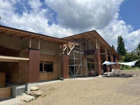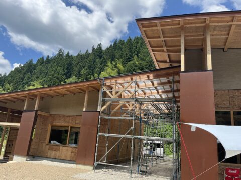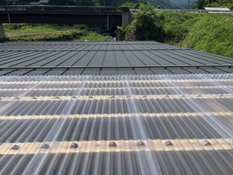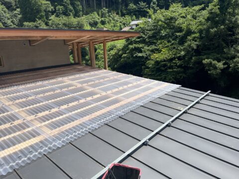 一年半ほど前に着工して今回住宅と民泊施設の間にスレート小波のポリカを施工してようやく完成となりました♪