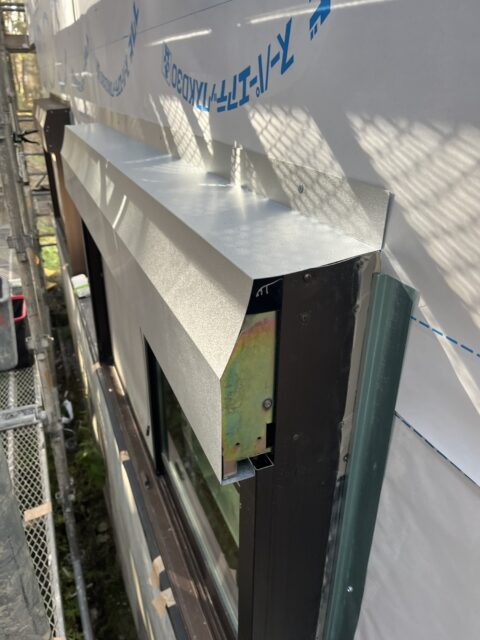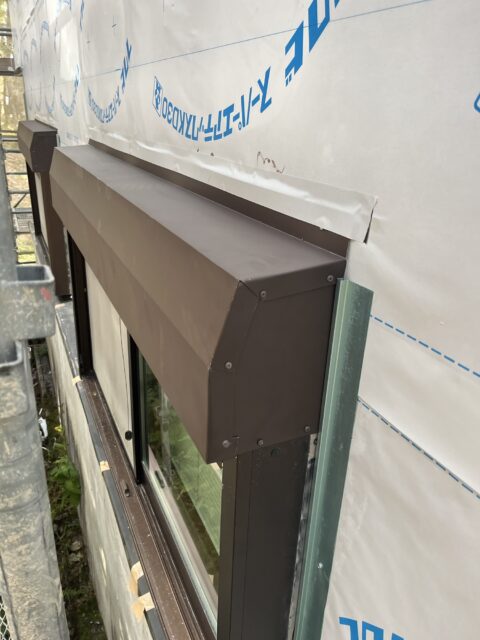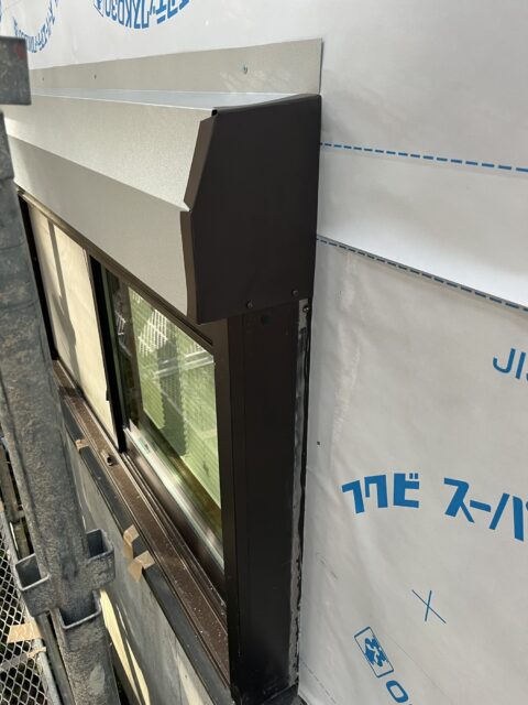 今回はシャッター付きのサッシが雪で破損した為板金施工です。