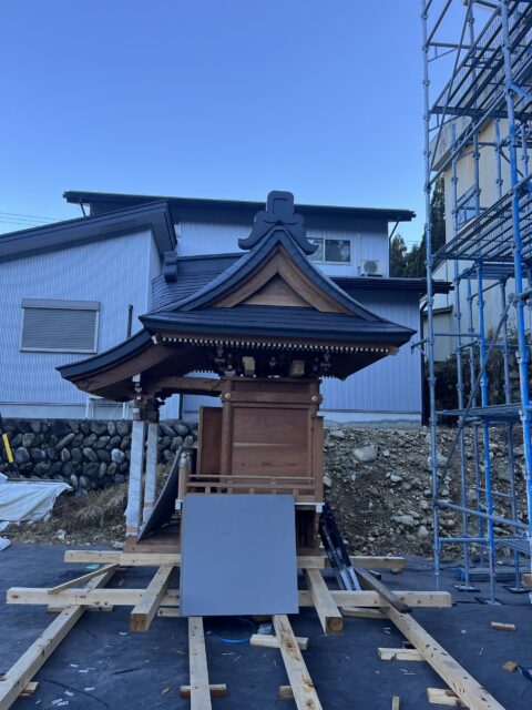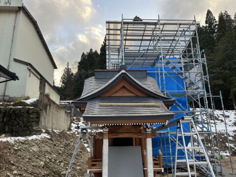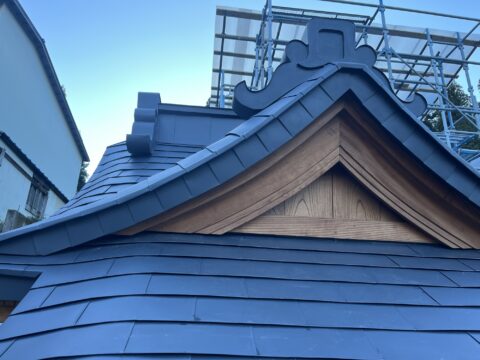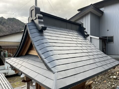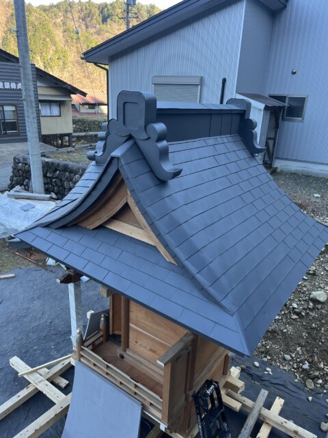 社殿の屋根ガルバリウム鋼板での屋根施工です。