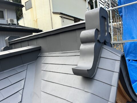 見附、一文字葺き、蓑甲、鬼飾り等は全て弊社加工施工をさせていただきました。